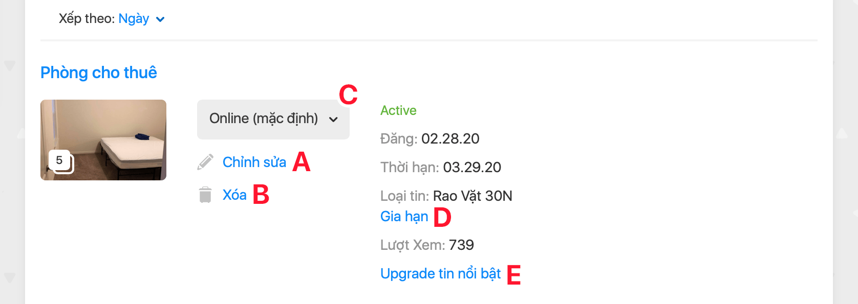 [D] Click “Gia hạn” để gia hạn thời gian online của tin.